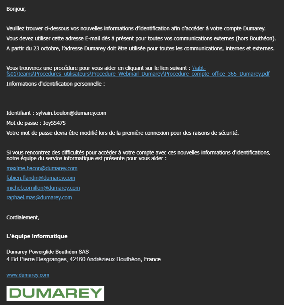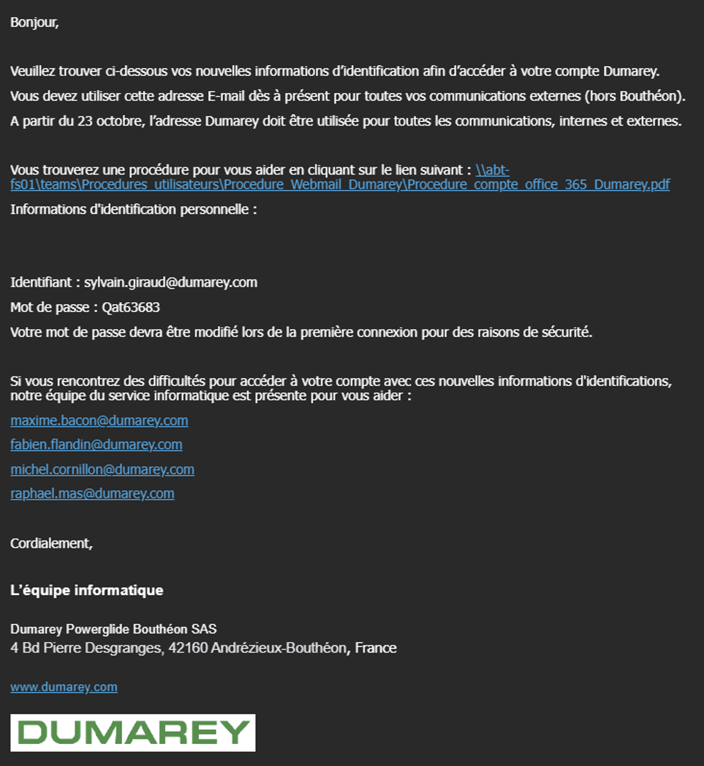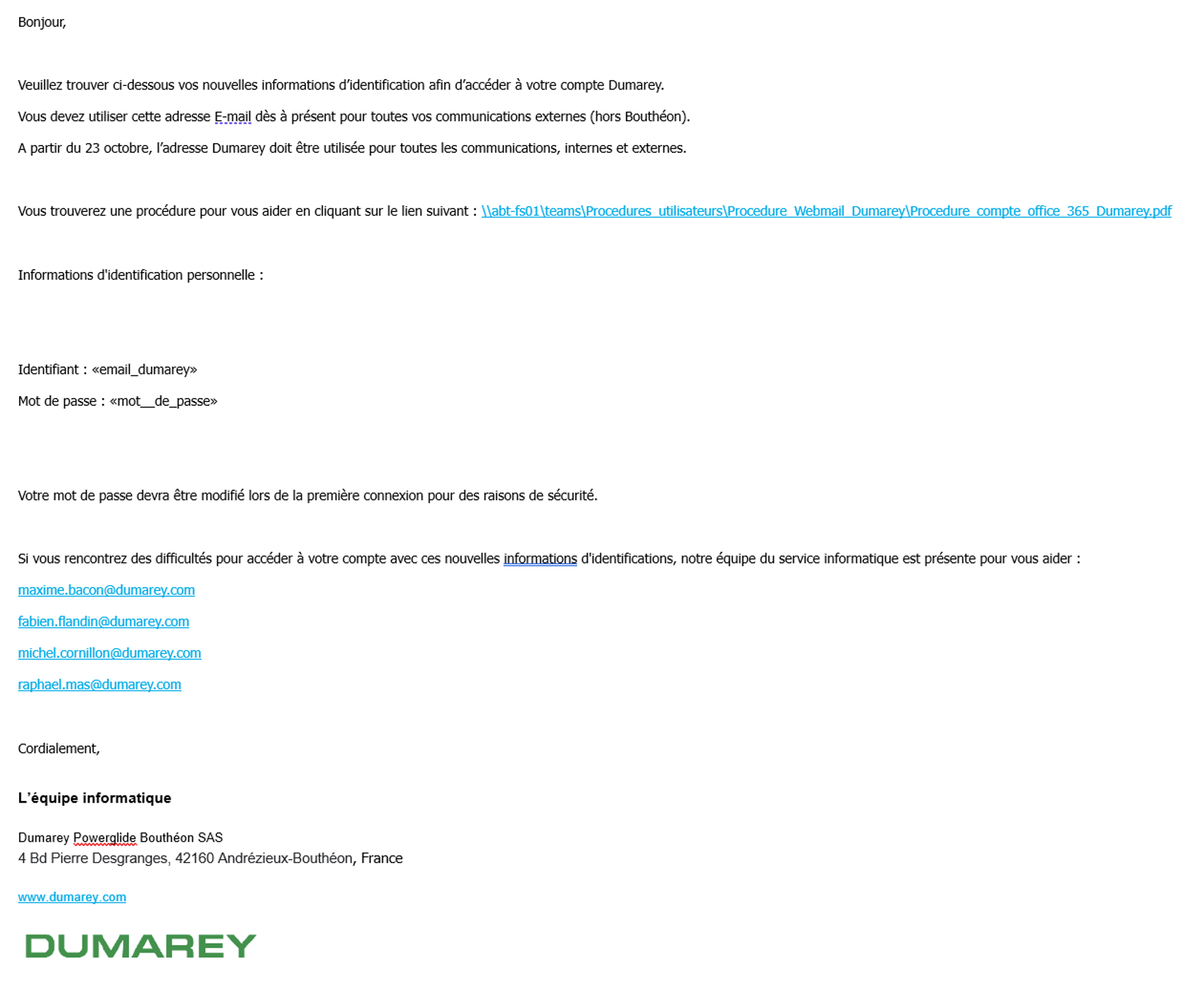 Pour mon cas, J’ai dû réaliser environ 400 mails pour tous les employés de mon entreprise. Dans ce mail je leurs ai donné leur nouveau mot de passe