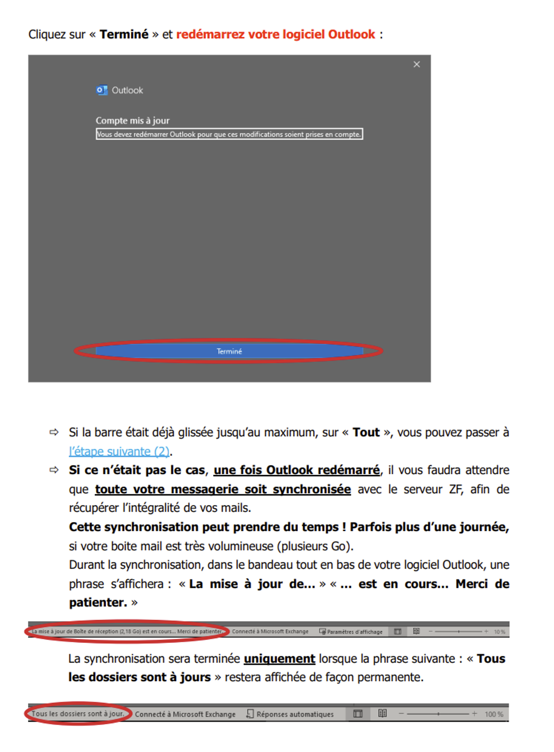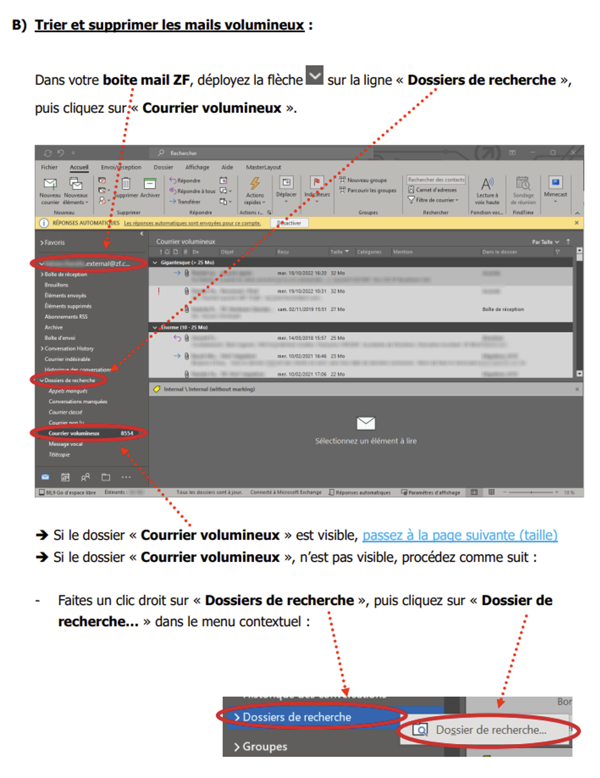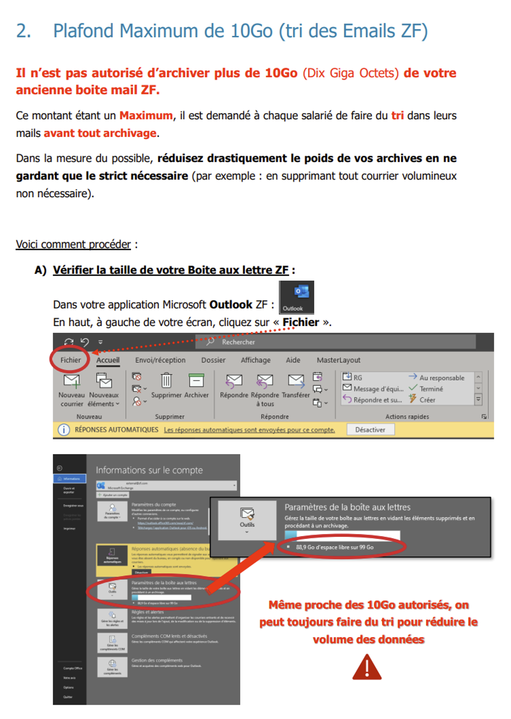 Une fois cette étape réalisée nous avons demandé aux utilisateurs de trier leur boite mail pour réduire leur taille à 10GO :