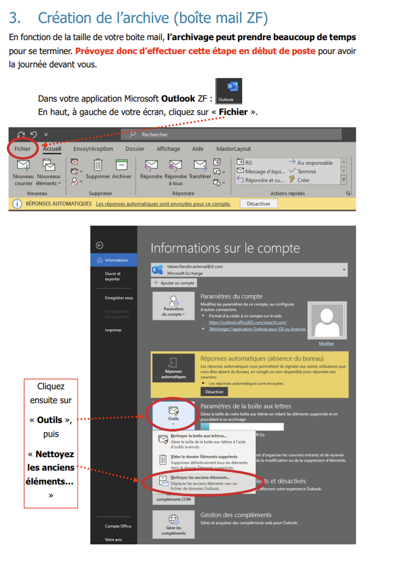 engendre le changement de boite mail. Les e-mails étant des outils de travail et d’archive, il ne fallait surtout pas les perdre.