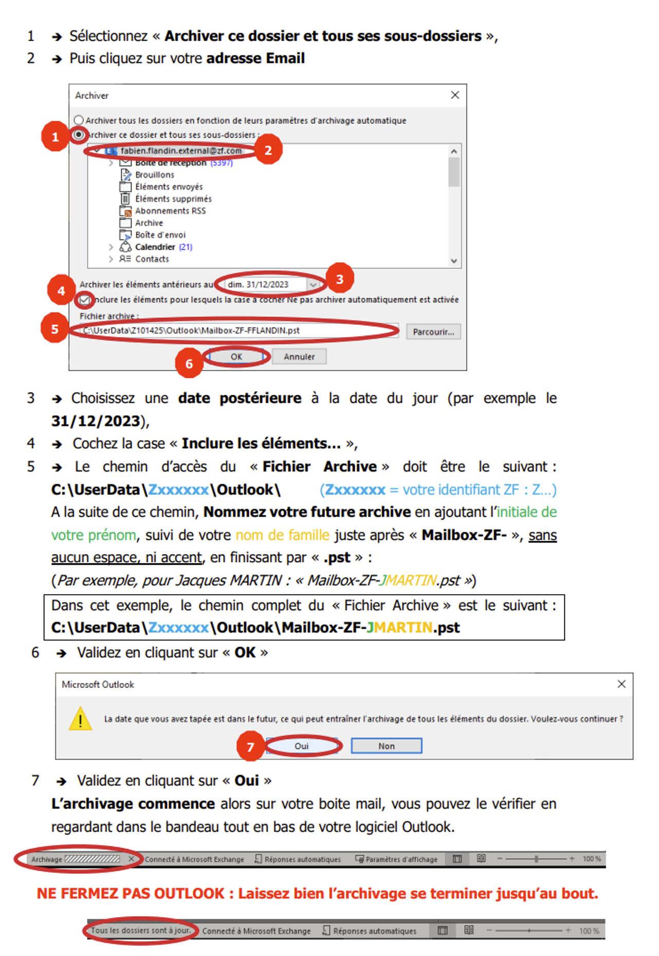 Maintenant, la troisième étape, l’archivage de tous les mails dans un fichier .pst :