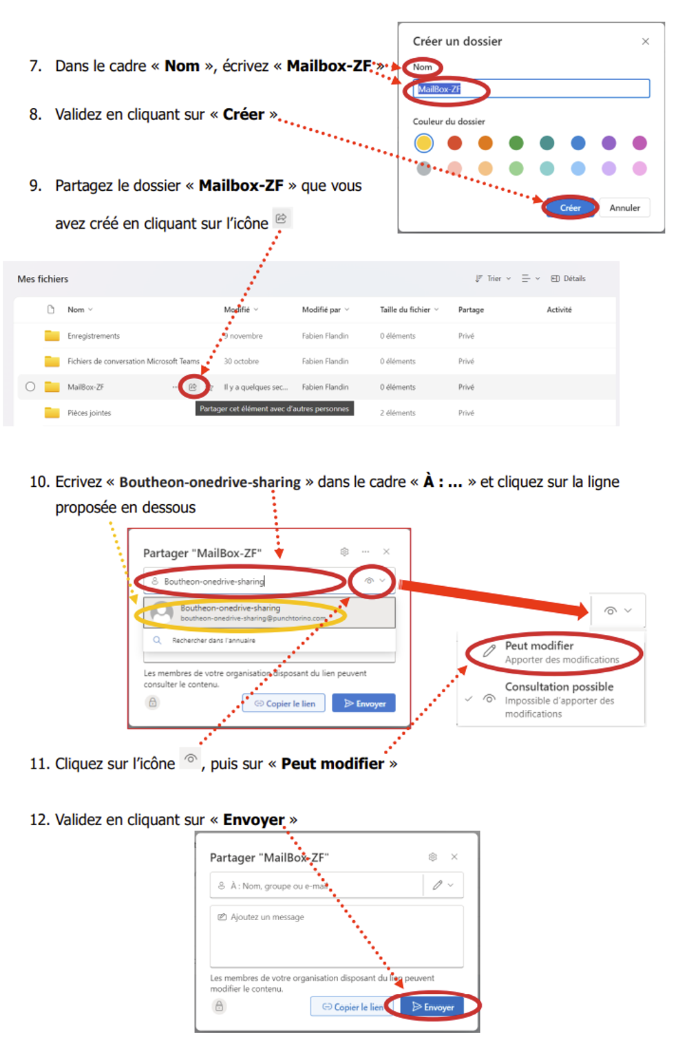 Le dossier est partagé à un compte commun (Share MailBox), appartenant à l'équipe informatique